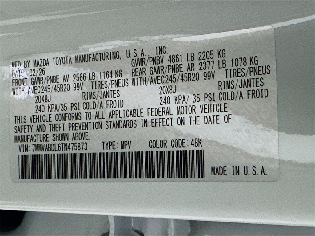 - Front Tire Size: P245/45HR20
