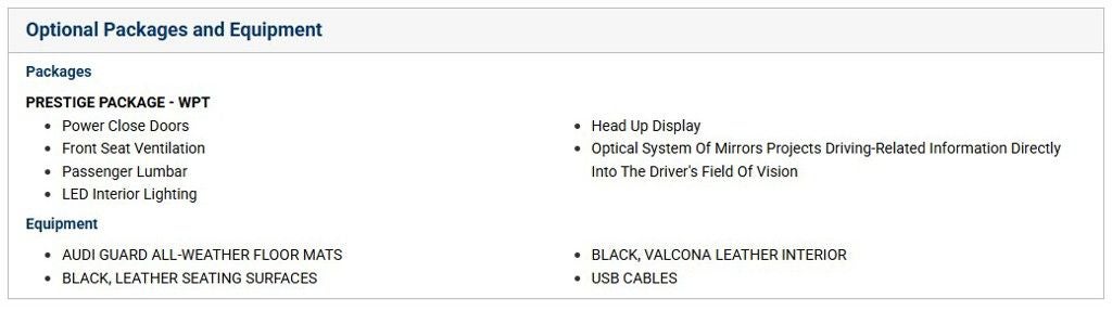 - Prestige Package featuring power-closing doors, front seat ventilation, passenger lumbar support, LED interior lighting, head-up display, and more