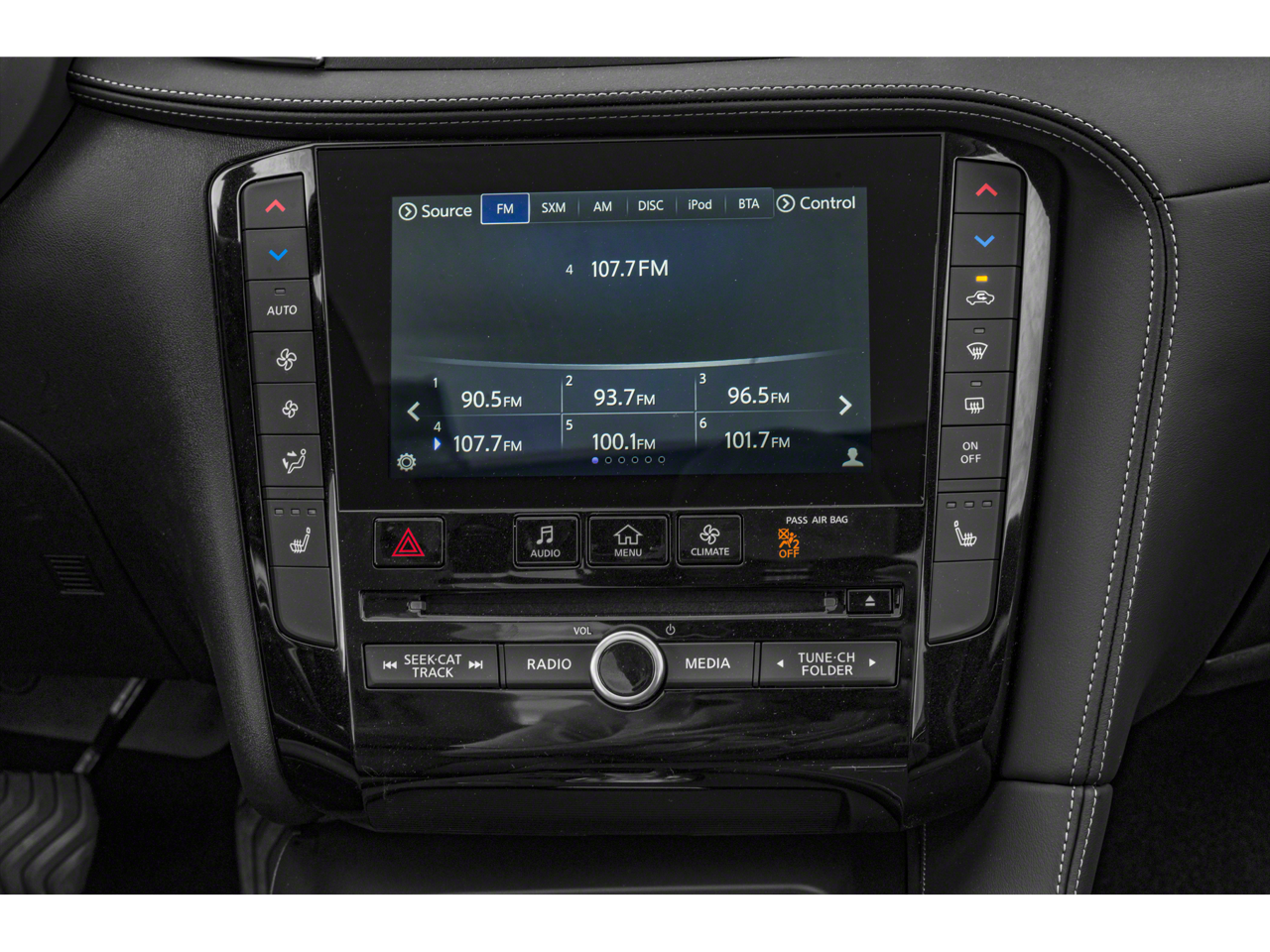 - Radio: AM/FM/CD Audio System -inc: 6 speakers, 4 USB connection ports, Apple CarPlay and Android Auto, dual display system w/upper 8" and lower 7" HD touch screens, INFINITI voice recognition, HD Radio technology, SiriusXM radio w/advanced audio features w/3-month complimentary trial, streaming audio via Bluetooth®, Bluetooth® hands-free phone system, Siri eyes free, hands-free text messaging assistant, active noise cancellation, WiFi hotspot, automatic collision notification and emergency call